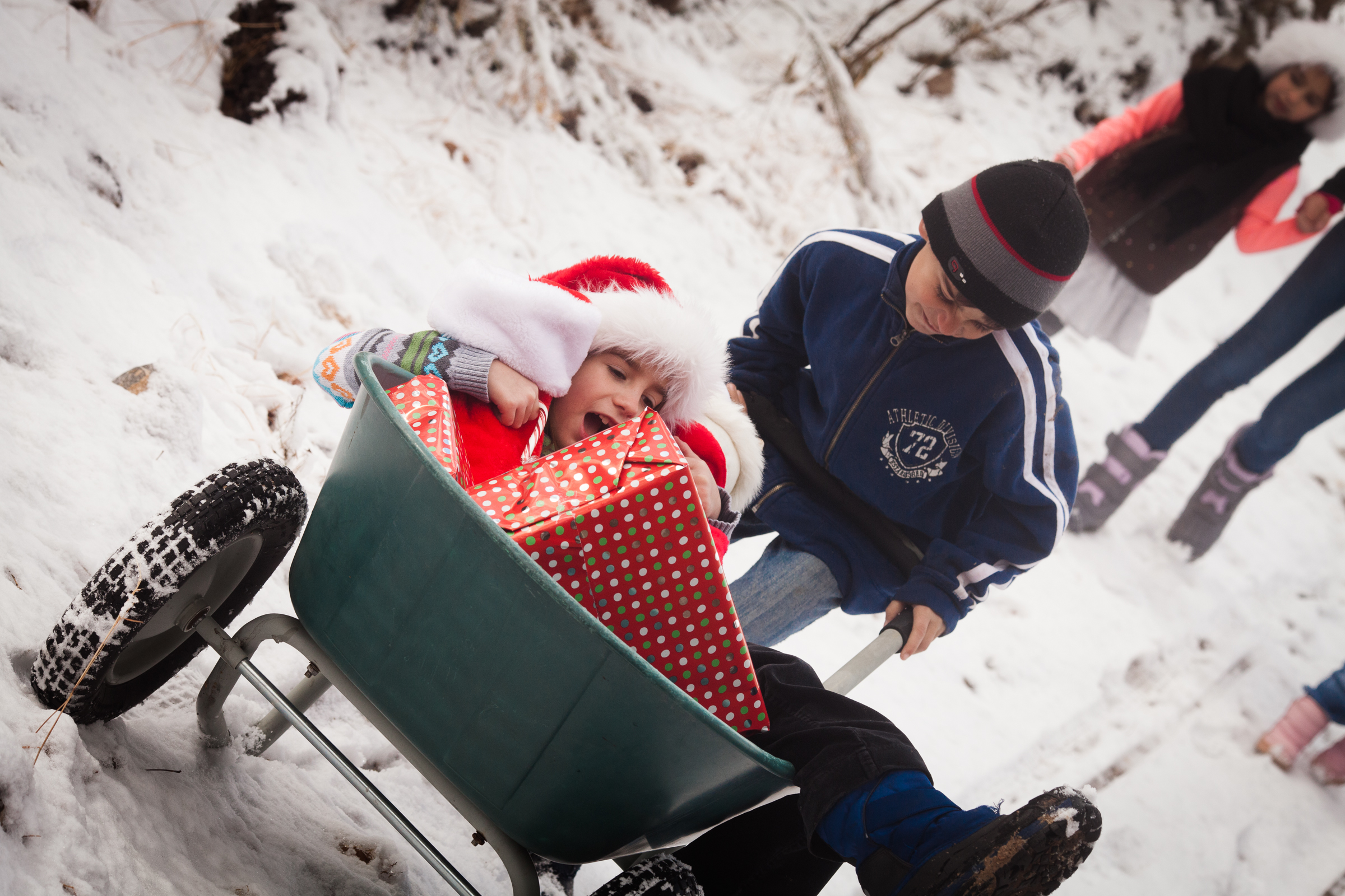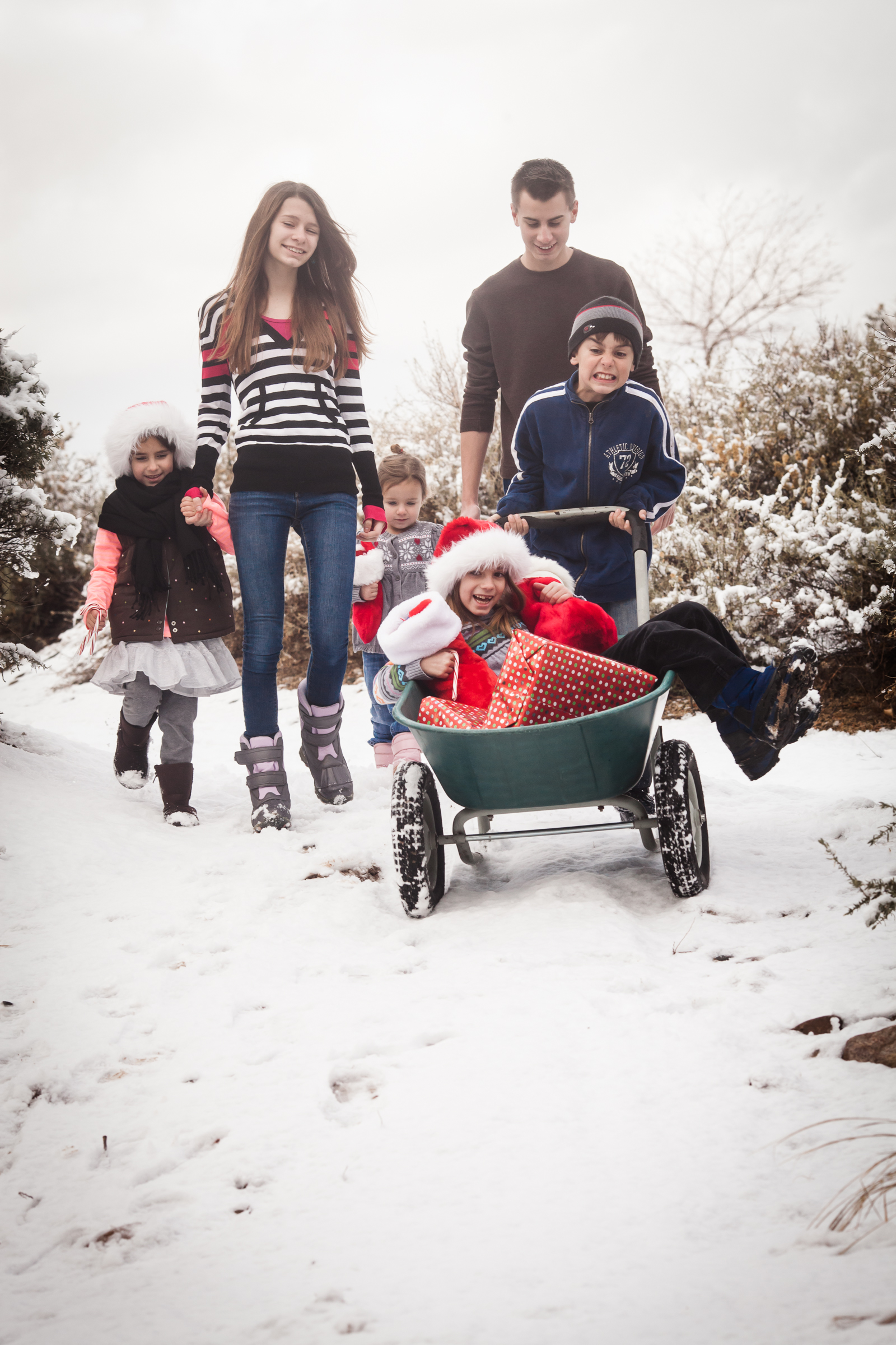 My vision for this shoot was to have the kids walking in the snow, pretending they are delivering presents.