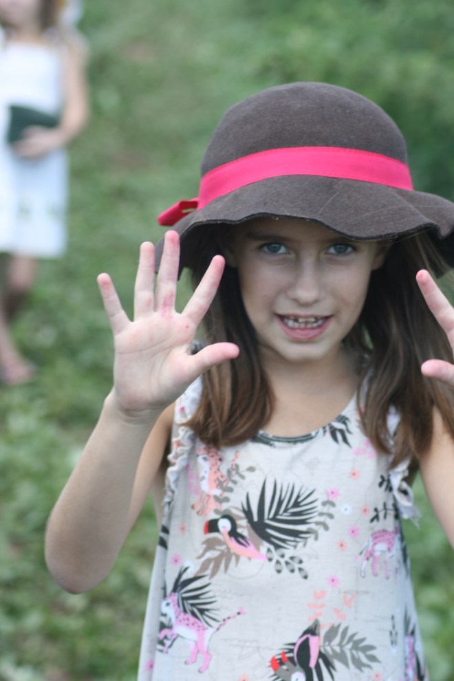 Tasha is wearing a blue dress from Old Navy, and a hat from Baby Gap. My top is from Banana Republic.